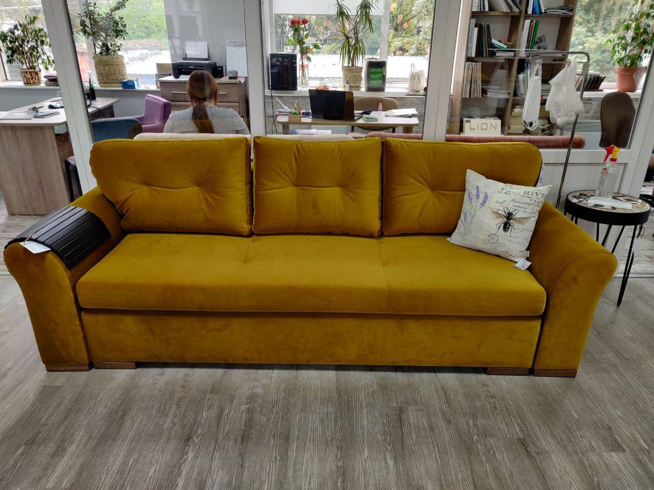 Стильний та зручний диван для Вашої вітальні. Він розрахований на три посадочних місця. Ціна на сайті вказана у першій категорії тканини. Остаточна ціна буде залежати від обраної клієнтом категорії тканини.