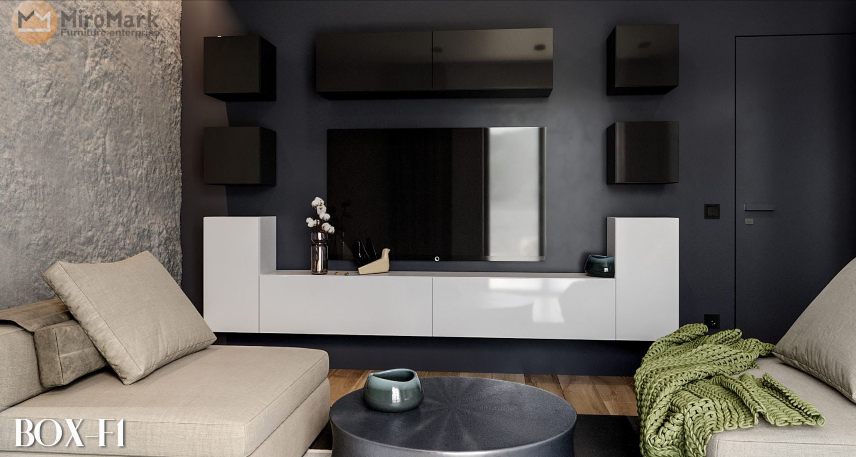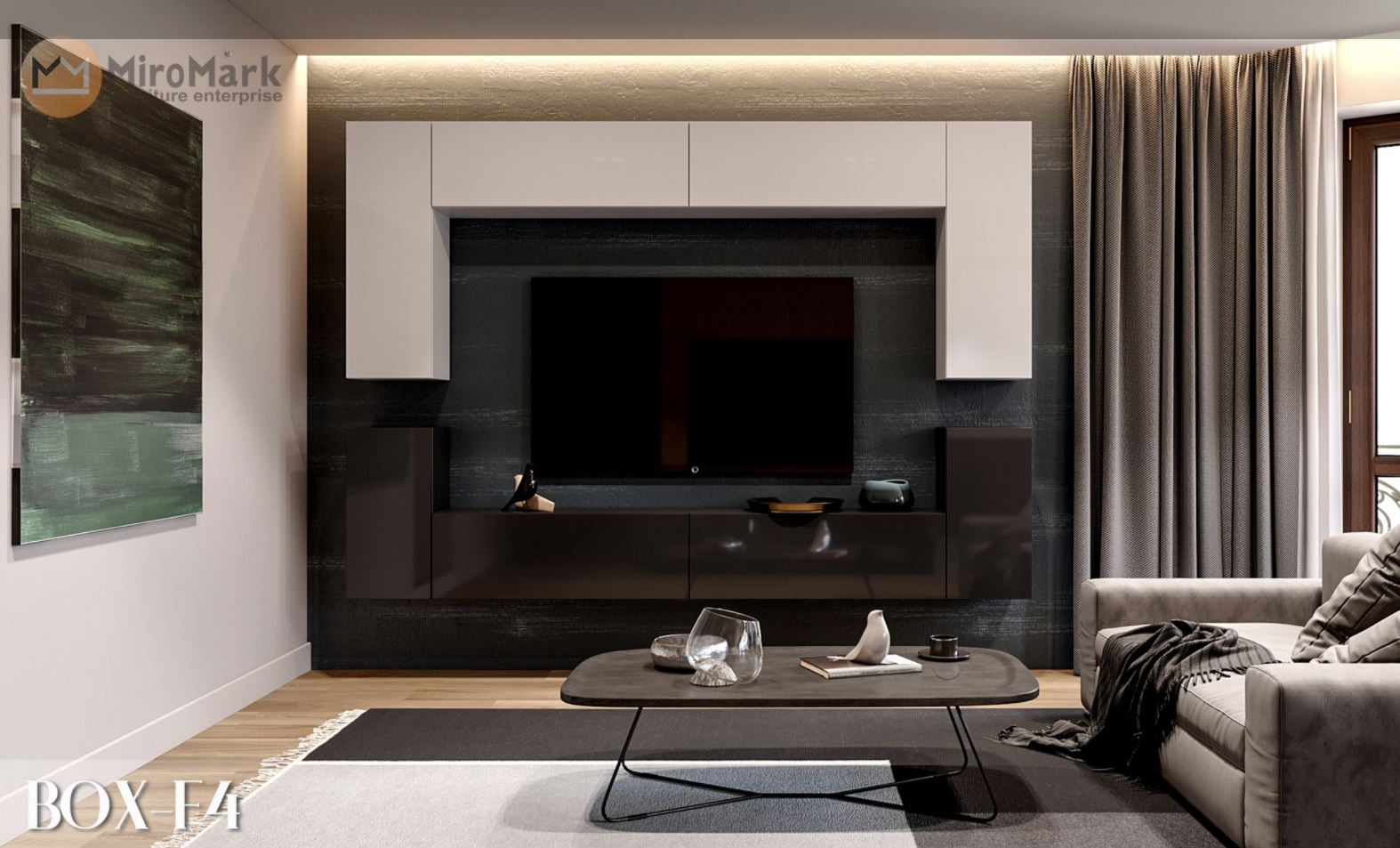 Стильна та функціональна вітальня для поціновувачів чітких ліній. Вітальня виконана з лдсп. Ви маєте можливість придбати дану модель набором, орієнтуючись на габарити своєї кімнати.