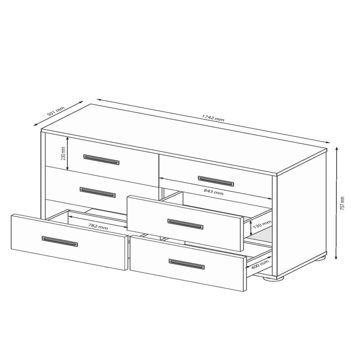Тип: комод із шістьма шухлядами