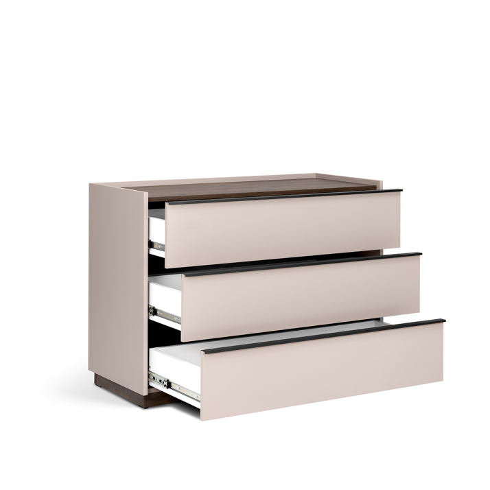 Корпус та фасади виконані з якісної ламінованої ДСП, що забезпечує міцність, стійкість до подряпин і легкість у догляді. Три місткі висувні шухляди дозволяють організувати зберігання так, як вам зручно. Продумана конструкція забезпечує стабільність і надійність у щоденному використанні.