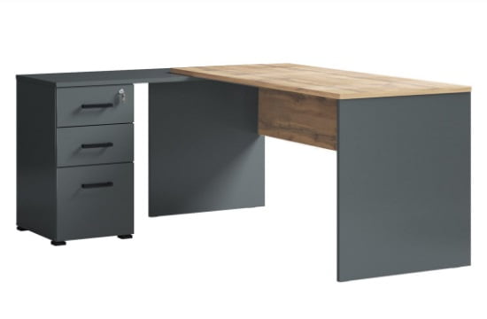 Кожен елемент цього комплекту виражає сучасний стиль і вишуканість, перетворюючи ваш офіс на простір, в якому приємно працювати та проводити час. Від робочого столу з інтегрованим простором для зберігання до стильних офісних шаф, цей комплект допоможе вам організувати ваше робоче середовище з максимальною зручністю. Усі елементи комплекту виготовлені з якісного лдсп. У дизайні меблів поєдналися ефектні фактури таких кольорів як мат антрацит і дуб вотан, а також якісна фурнітура чорного кольору. Серія є універсальною для оформлення офісу в єдиному стилі. Кабінет керівника, зала засідань, і хол для робочих місць персоналу у поєднанні створять характер та атмосферу офісу будь-якого розміру. Ви можете самостійно обирати елементи та змінювати комбінації модулів, як зручно.