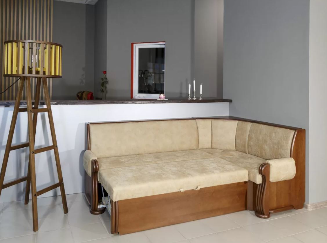 Кухонний куточок Александра зі спальним місцем — це універсальне рішення для кухні, яке поєднує комфорт м’якого куточка та додаткове спальне місце для гостей. Модель оснащена надійним механізмом трансформації «Дельфін», що дозволяє легко розкладати куточок у повноцінне спальне ліжко розміром 190 × 106 см, забезпечуючи зручне розміщення для відпочинку.