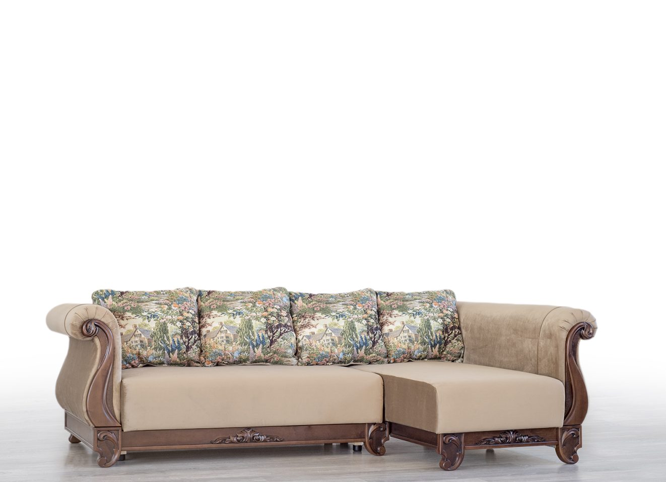 Розкладний кутовий диван ЧАРДАШ ЄВРО від меблевої фабрики “Мебус” (Львів) – це вишукане поєднання класичного стилю, комфорту та практичності. Його вишуканий різьблений декор надає інтер’єру особливого шарму, підкреслюючи витончений смак власників.