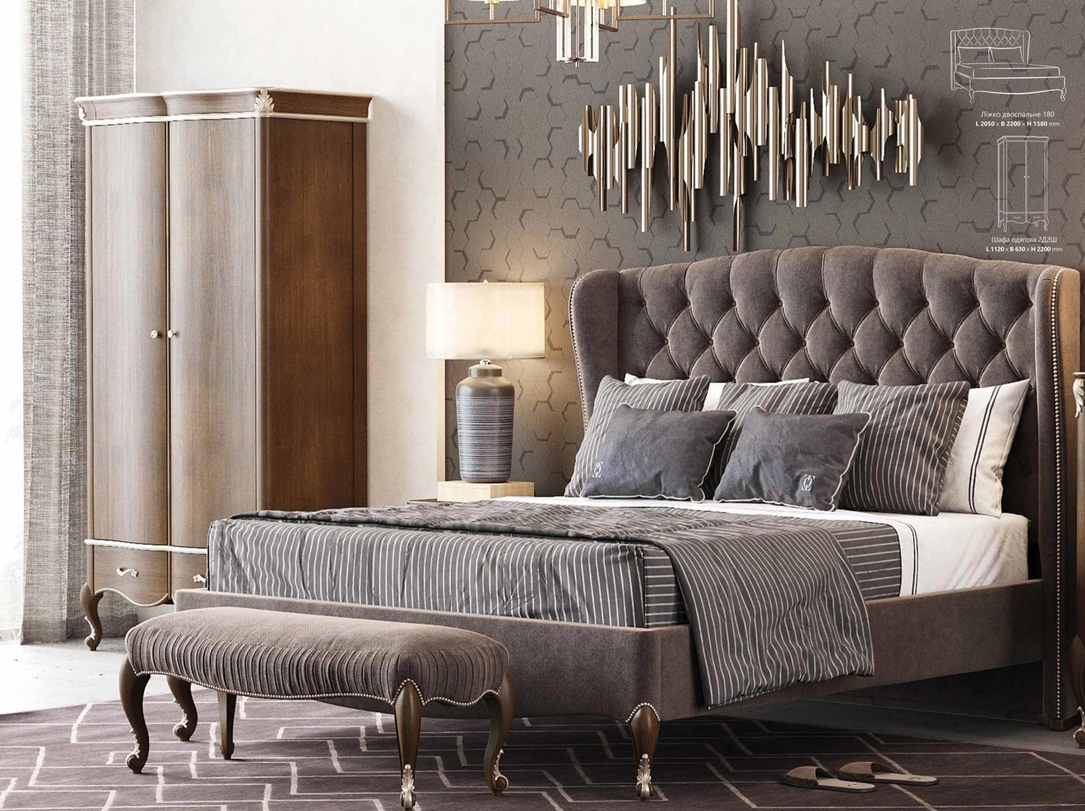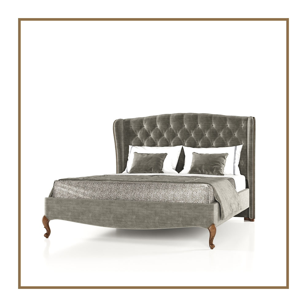 Елегантне двоспальне ліжко TEXTILE GENEVA — втілення розкоші та комфорту. Високе м’яке узголів’я з витонченими боковими “крилами” та глибокою стібкою «каретна стяжка» створює вишукану атмосферу та стає справжньою окрасою інтер’єру. Округлі форми, декоративні ніжки з натурального дерева та преміальна оббивка додають моделі благородного шарму.