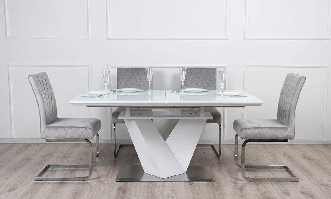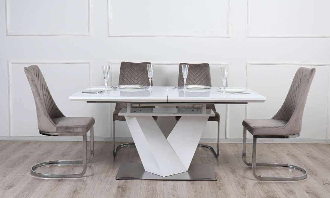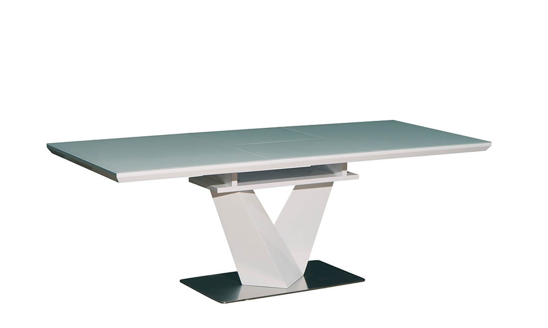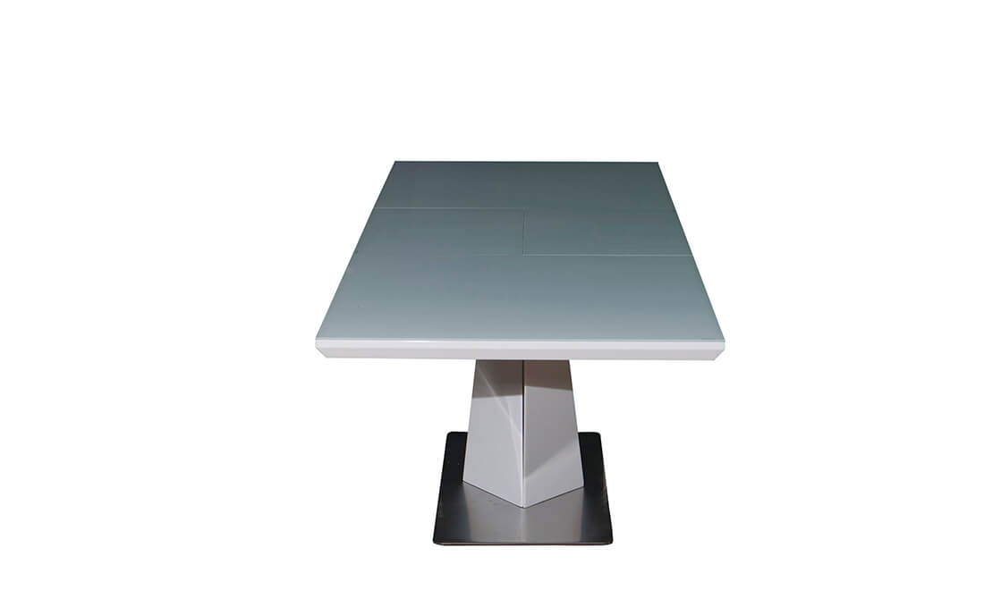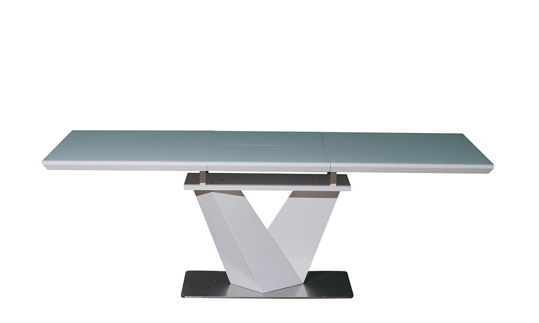 Завдяки розкладному механізму типу “метелик”, стіл легко трансформується з 1600 мм до 2200 мм, що дозволяє комфортно розмістити 6–8 осіб. Міцна опора з МДФ у поєднанні з елементами з нержавіючої сталі додає конструкції стійкості та надійності.