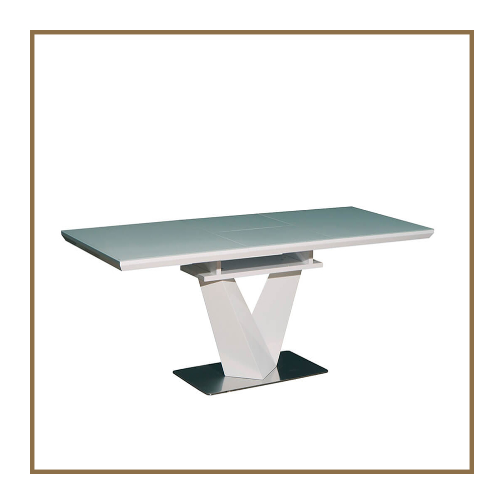 Сучасний обідній стіл Ніколь із витонченим дизайном — ідеальне рішення для просторої кухні або їдальні. Стільниця виготовлена з комбінації гартованого скла та МДФ, що забезпечує не лише естетичний вигляд, а й практичність у догляді.