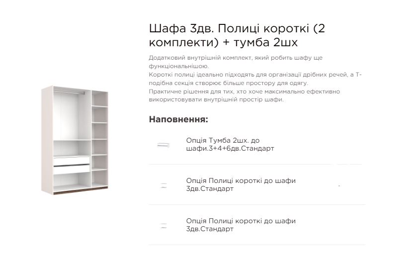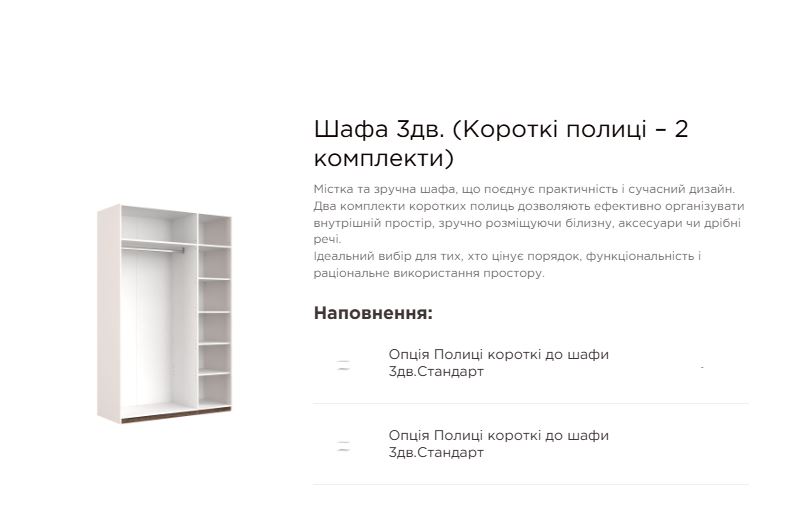Це відмінний вибір для тих, хто цінує порядок, якість і стиль у меблях. Шафа Тоффі 3Дв допоможе організувати простір у кімнаті та створити атмосферу комфорту у вашому домі.