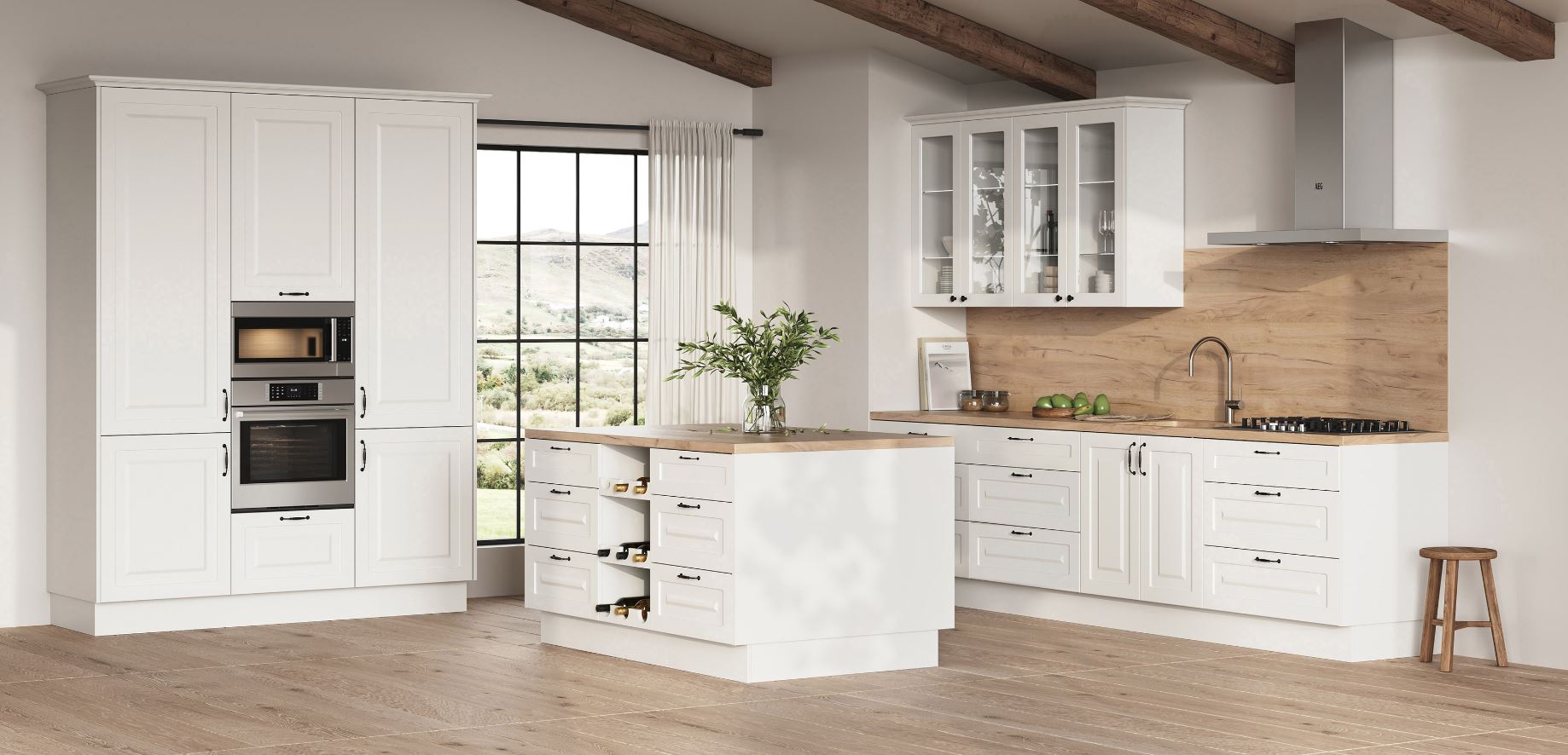 Елегантна рама фасаду зі скошеними краями втілює ідеальне поєднання практичності та вишуканості. Масивні ручки, що додають виразності дизайну, доповнюються широкою варіативністю модульних рішень для оптимальної організації кухонного простору. Завдяки величезній палітрі RAL – понад 200 матових відтінків – ви маєте можливість реалізувати найсміливіші креативні ідеї. Комбінуйте секції відповідно до розміру вашого приміщення та створюйте інтер’єр своєї мрії разом з меблевим салоном «Злато».